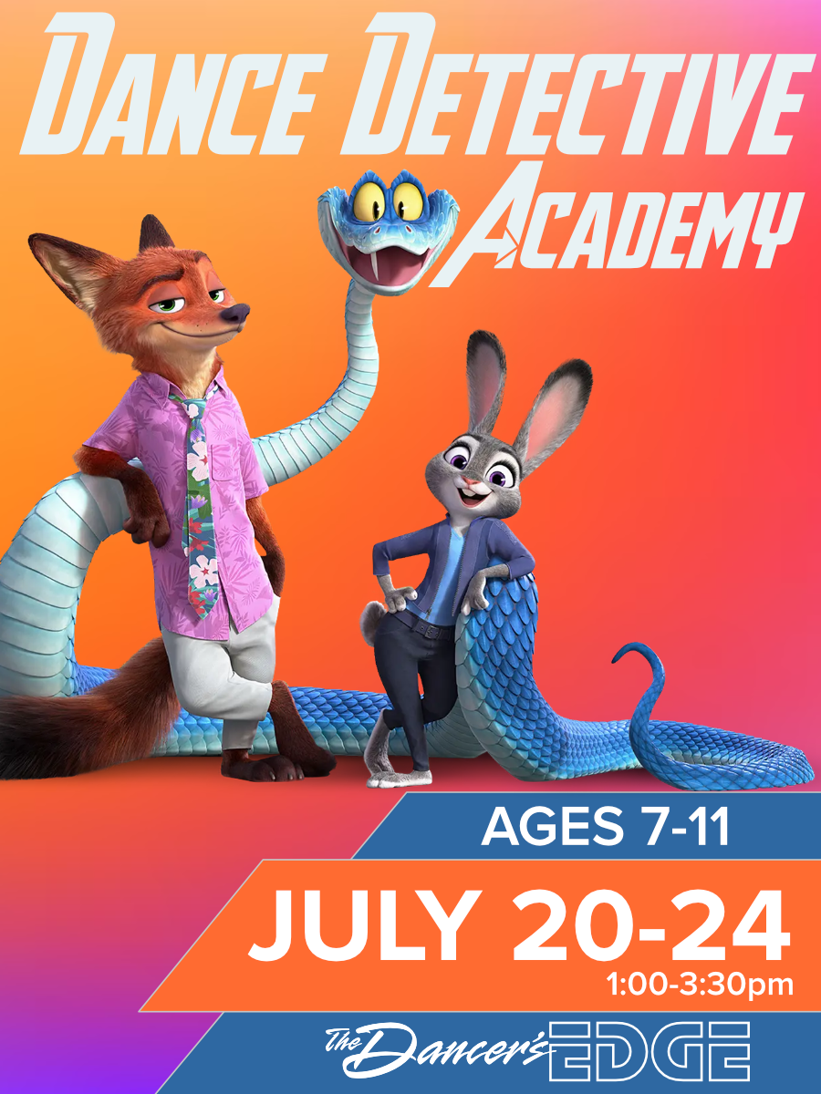 Calling all junior investigators! Put on your detective hat and hit the dancer floor as campers crack the case through energetic dance classes, themed crafts, creative games, and mystery-solving adventures inspired by a bustling animal city. Campers will sharpen their moves, teamwork, and confidence as they dance their way to solving the ultimate case!